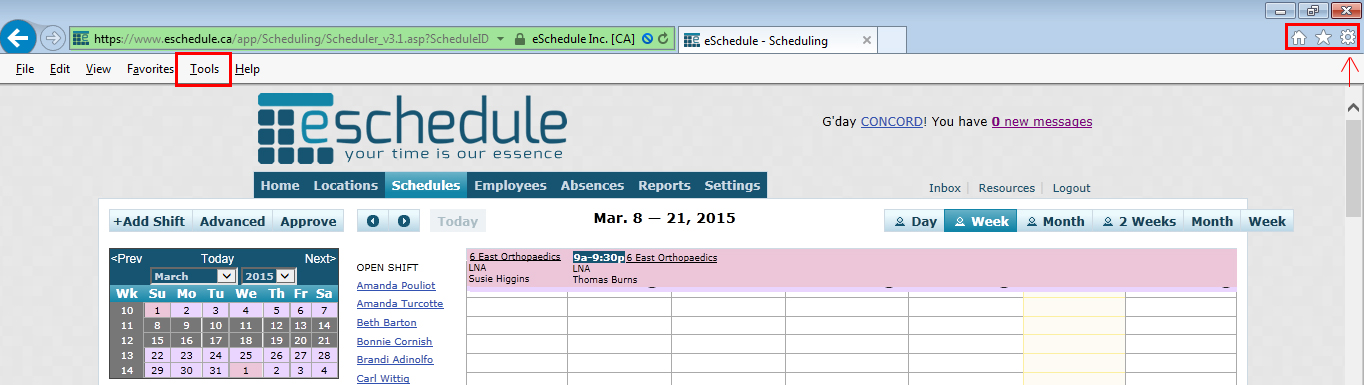 If you’re using Internet Explorer (IE) and have noticed that not all functionality is working as it should be, it’s because eSchedule has been added to your browsers “Compatibility View Settings”. There are 3 quick steps to resolve this: